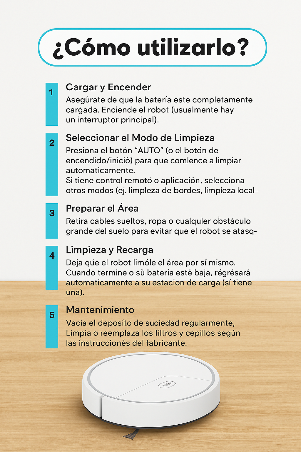 A diferencia de las aspiradoras tradicionales, este robot reduce el esfuerzo físico, minimiza el ruido y disminuye la necesidad de productos adicionales. Su diseño está pensado para durar, resistir el uso diario y ofrecer una experiencia más sostenible a largo plazo. Es un complemento ideal para quienes buscan cuidar su hogar sin renunciar a un estilo de vida más práctico, ecológico y armonioso.